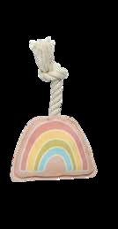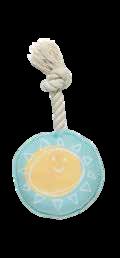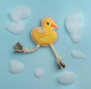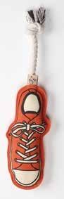 Features: shape and unique design, easy for your pup to pick up and carry. Dogs love the cotton rope texture and the rope handle makes a nice handle a easy to throw Made fr non-toxic and durable rubber Care: Handwash Cspk: 6 ea