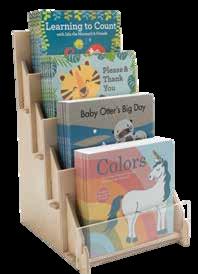 tiered shelves Each shelf holds 6 books Ships flat for simple interlocking assembly Made of birch plywood and clear acrylic in