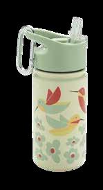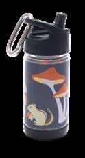 Double wall 18/8 Stainless Steel, comes with a carabiner for easy attaching to a backpack, easy flip style spout and an extra straw inside.