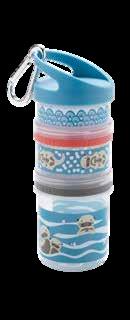 Complete with two different sized compartments, carabiner, and removable lid each container stacks and locks into place