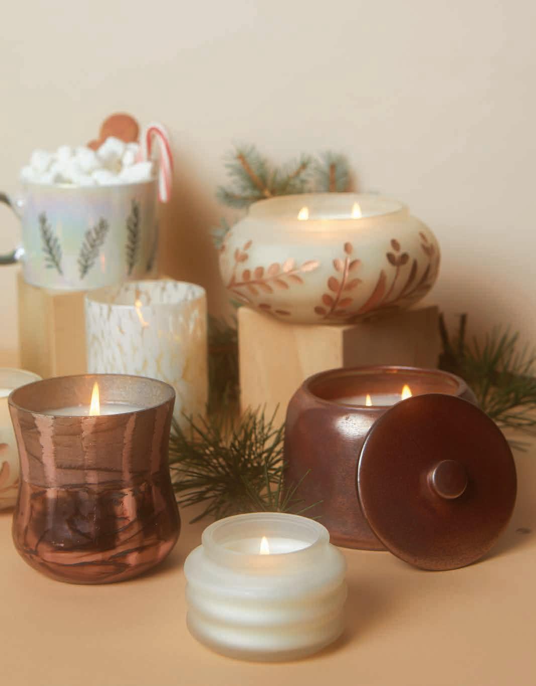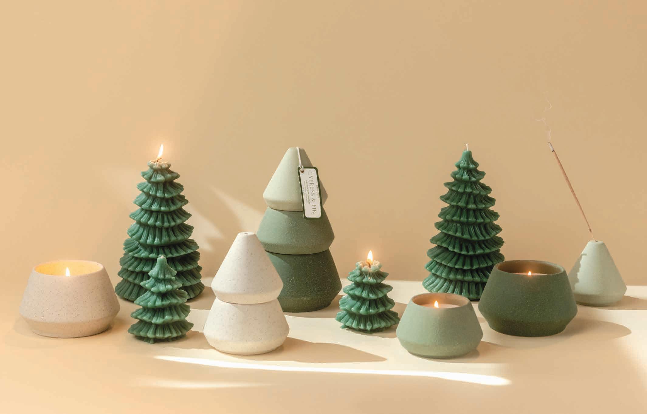 Inspired by native cypress trees, cozy fireplaces, and the feeling of togetherness, Cypress & Fir blends curated artisan vessels and unique illustration with fragrance to bring the aroma of a fresh forest into your home. Each piece, from hand-blown glass, to matte textured ceramics, is designed to evoke a sense of holiday cheer that carries throughout the season.