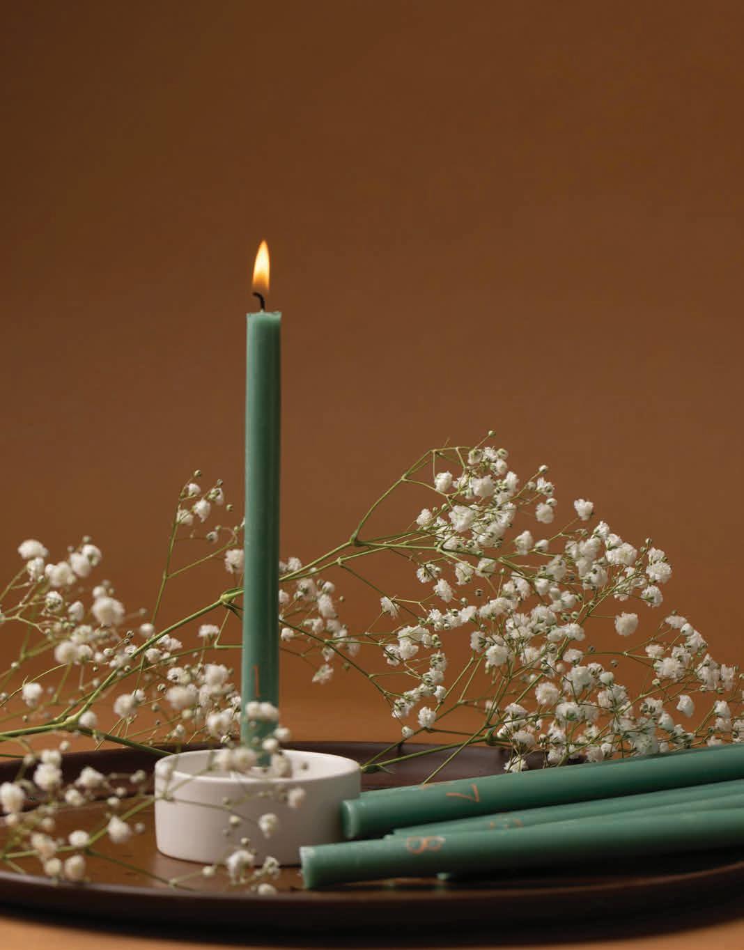 THA002 GREEN TAPER+ TEA LIGHT HOLDER