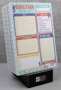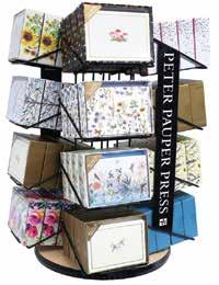 80-unit spinner display has 20 pockets. Each pocket holds 4 journals, of 20 different styles. Choose from Mid-size (pages 40-42), Foldover (page 43), Bookbound (pages 44-47), Locking (page 48), or Oversize (pages 49-52). Display measures 62-1/2" high x 17" square (159 cm high x 43 cm square), base is on wheels.