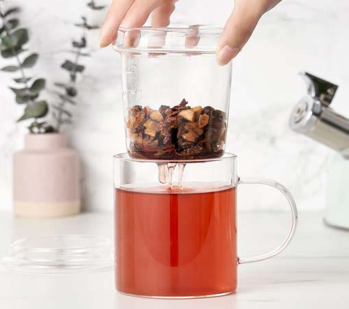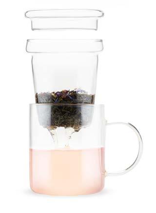 Easily brew delicious loose leaf tea with the large stainless steel infuser basket. The lid doubles as a coaster for the infuser.