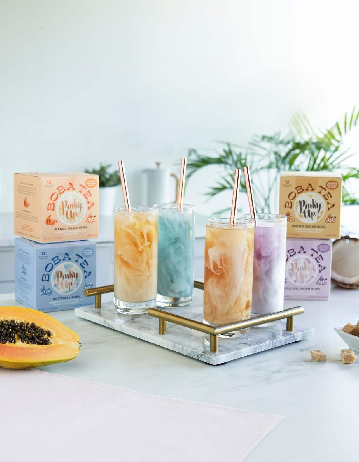 Inspired by our favorite boba cafes, Pinky Up brings the joy of boba with fewer calories in an easy-to-brew sachet filled with real tapioca pearls and delicious ingredients right in the bag.