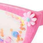 CLEAR SOFT VINYL FILLED WITH PINK PARTY CONFETTI, GOLD FOIL DETAIL, EASY TO CLEAN, DOUBLES AS A PLACEMAT 13 IN. H X 18 IN. W