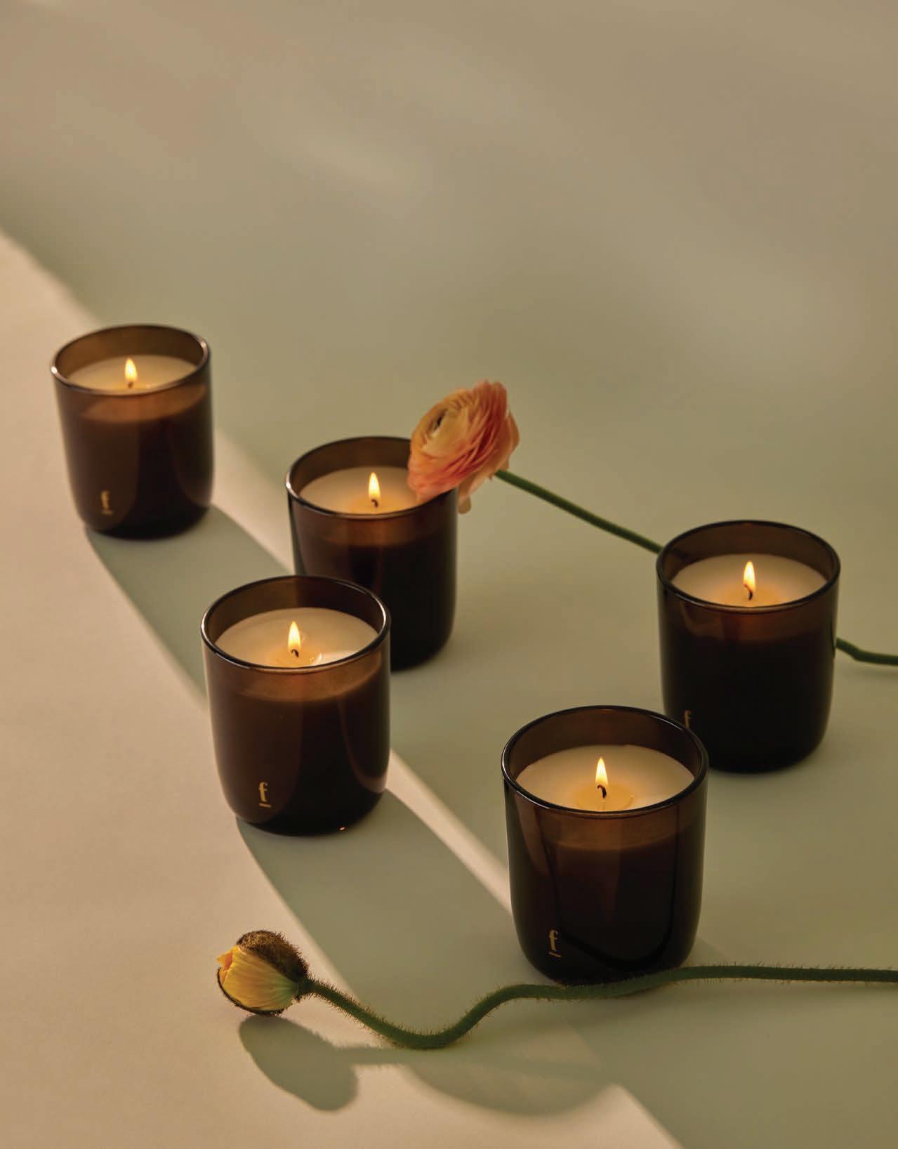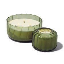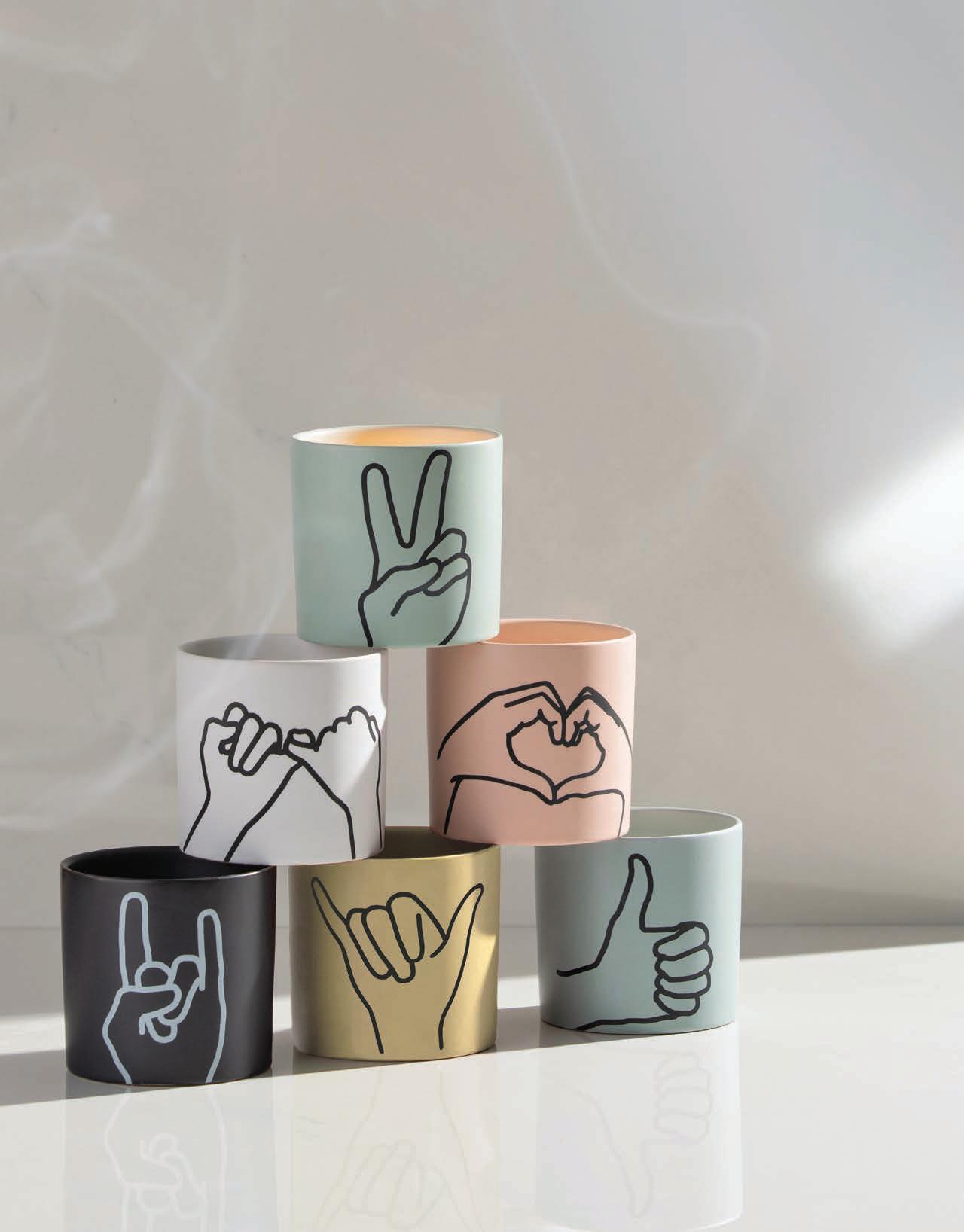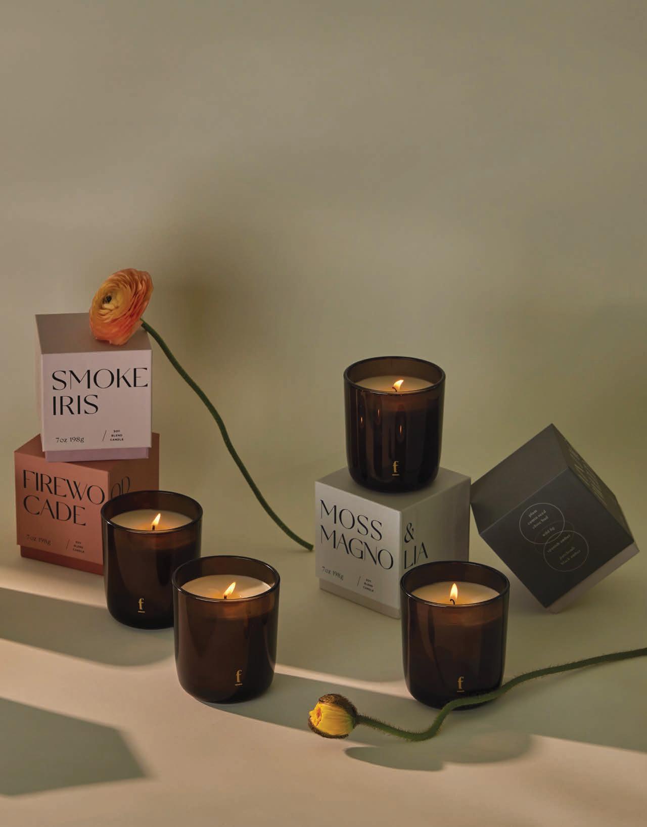 WE NAMED THIS EARTHY, EVERGREEN COLLECTION SOL, WHICH MEANS ‘SUN’, BUT WE LOVED THE WAY IT ALSO READS ‘SOUL’ BECAUSE WE THINK IT JUST FEELS GOOD. THE OPAQUE GLASS VESSELS IN TIMELESS COLORS ARE VERY VERSATILE, PLUS THE WOOD LIDS, EMBOSSED GLASS DETAIL, AND CUT PAPER LABELS ALLOW THESE CANDLES TO TRULY SHINE!