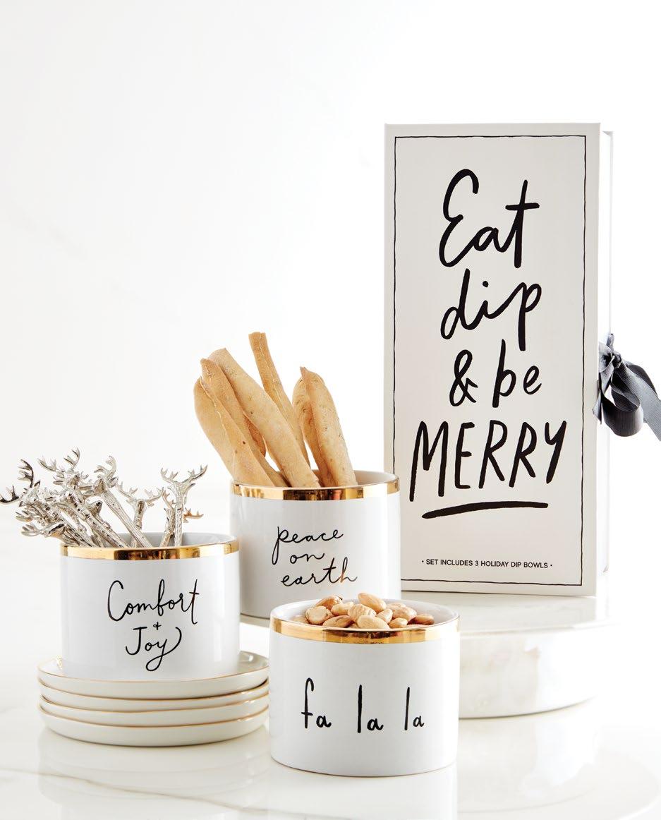 Ceramic | Cardboard Box: 5.11" W x 11.18" H x 4.21" D Hand Wash Only | Set Includes: 3 Gold Foil Rimmed Dip Bowls min 2 | whsl $17.50