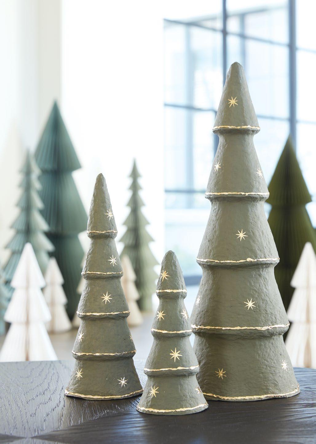 Cotton Mâché | Gold Foil Details | Large: 5.5" W x 9.5" H Medium: 4.25" W x 8" H | Small: 3.25" W x 6" H