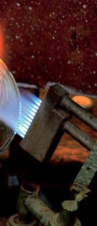 Standard glass consists of sand, lime, and sodium or potassium oxides. Spiegelau crystal glass has the same ingredients, plus a certain percentage of metal oxide. These ingredients are melted at approximately 2732°F and formed into the desired product.