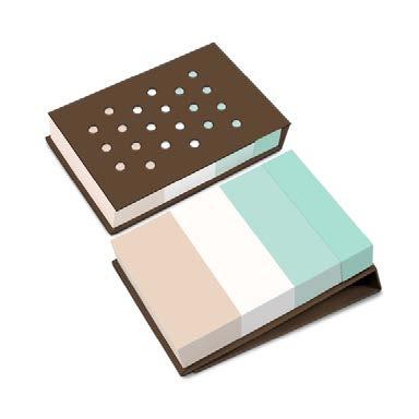 Hardcover case with die-cut holes and removable bellyband Gold foil branding on back cover