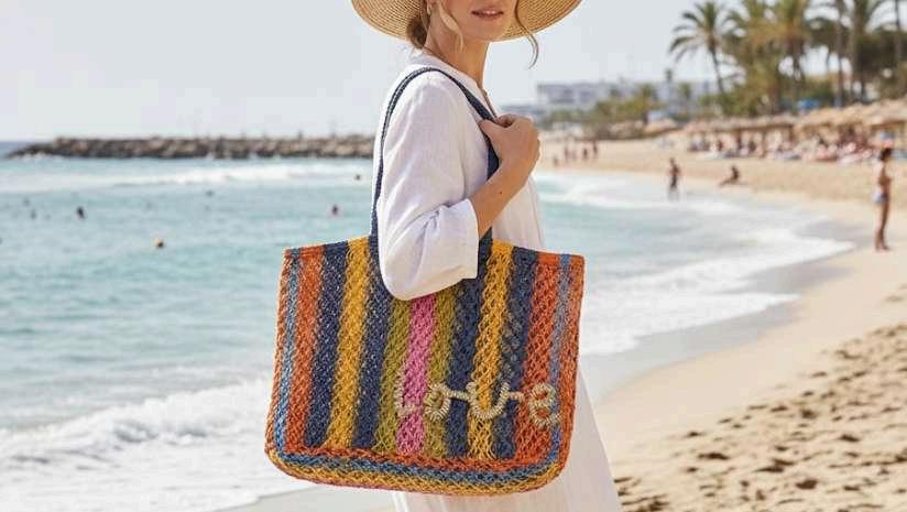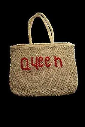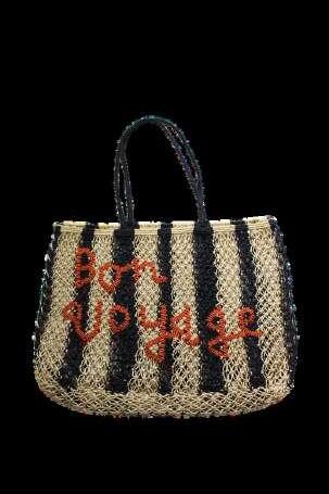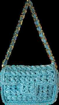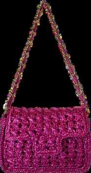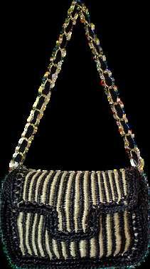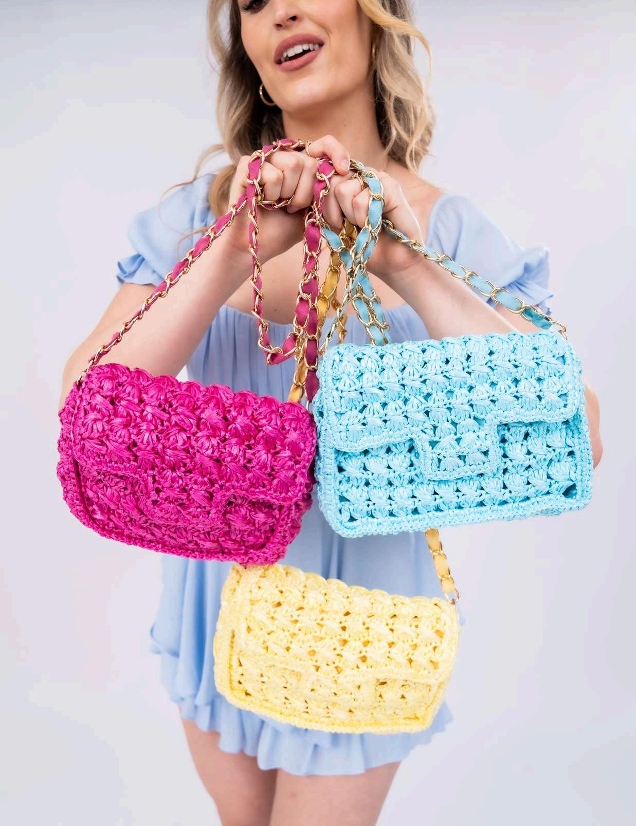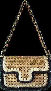 Handmade raffia bags. One interior wall pocket and a chain. Approx. 9.25” x 7”.