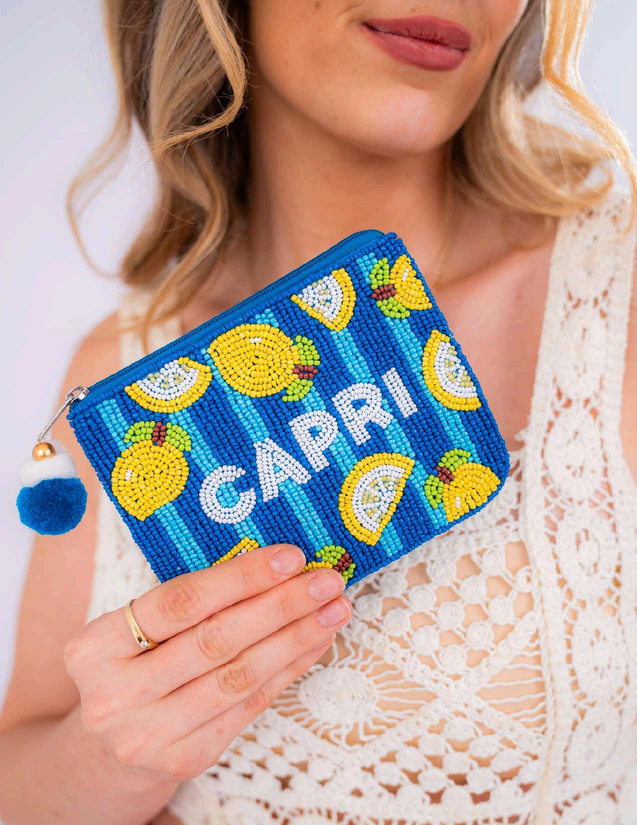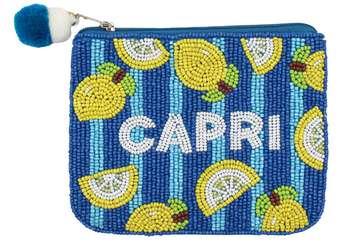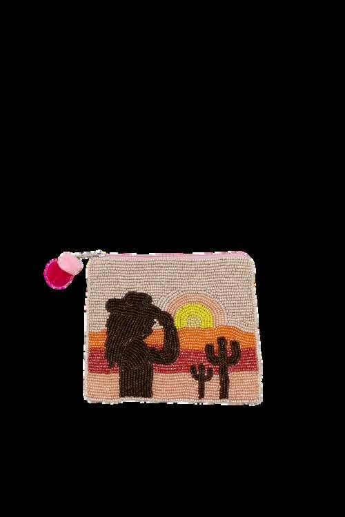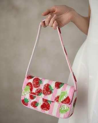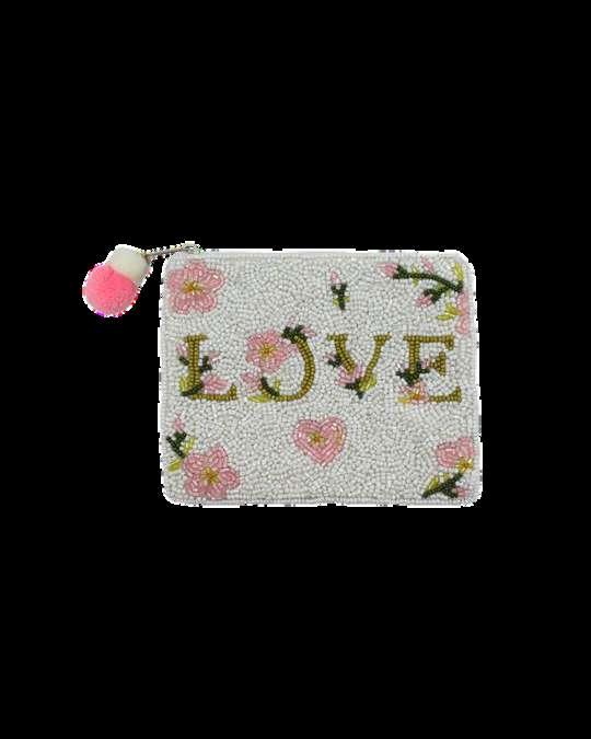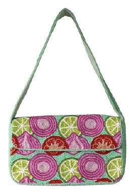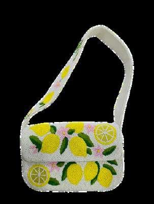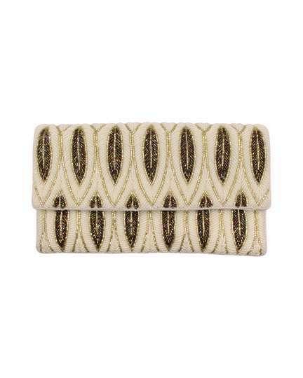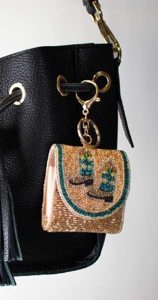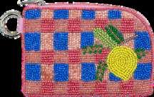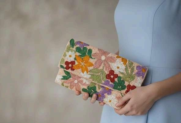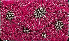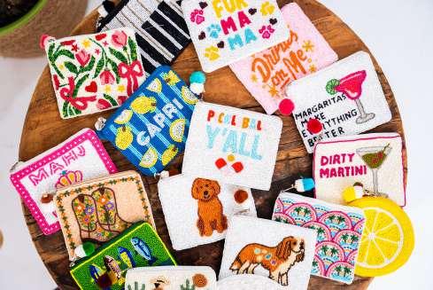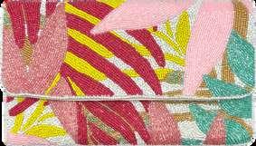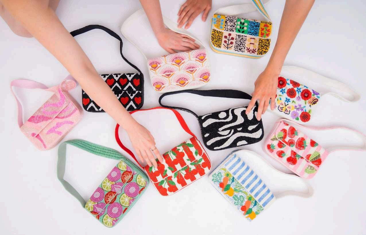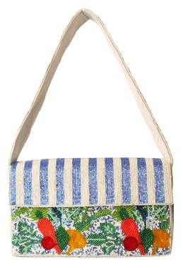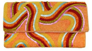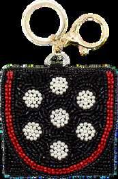 $40. Fully beaded with a 100% cotton interior, one interior wall pocket, and two magnetic snap closures. Spot clean only.