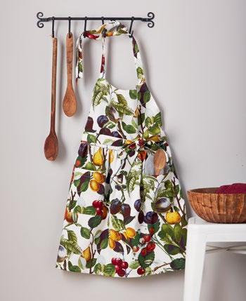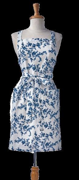 F NEW! G17893 SPRINGTIME FLORAL PINAFORE APRON (Multi) Cotton. Hand screen printed smock apron. Cross back. 2 pockets. Machine wash cold separately, tumble dry low. Hang tag. 38.07”L x 25.54”W x 0.2”H. Pk 3 pcs. $14.00 ea.