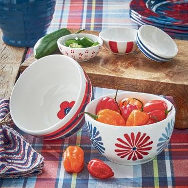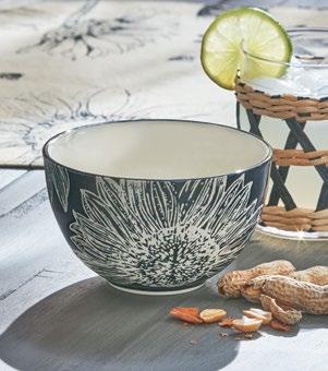 E NEW! G17984 SPRINGTIME FLORAL SNACK BOWL (Multi) Stoneware. Dishwasher safe. May get hot in microwave. 5.5”L x 5.5”W x 3.09”H 20 oz. Pk 4 pcs. $5.50 ea.