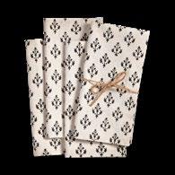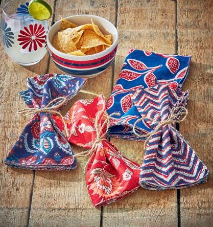 I NEW! G18229 EMMA GIFT BAGS S/3 (Multi) Paper and cotton. Handmade paper made from upcycled cotton salvage. Hand block print. Dust clean. Banded. Sm: 5”L x 5.5”W x 3”H; Md: 6.5”L x 8.5”W x 3.5”H; Lg: 9”L x 11.5”W x 4”H. Pk 3 pc. $8.00/set.