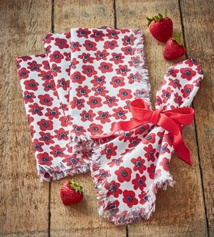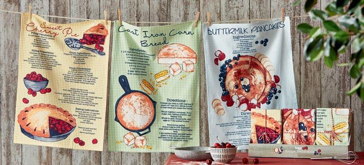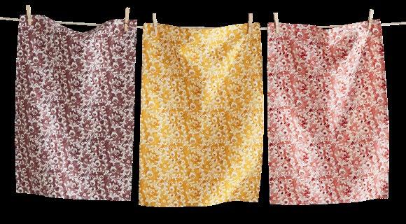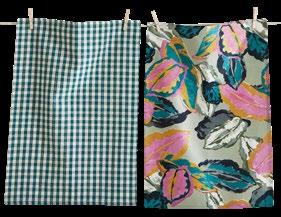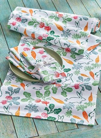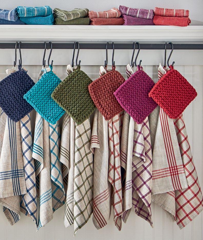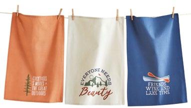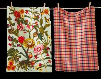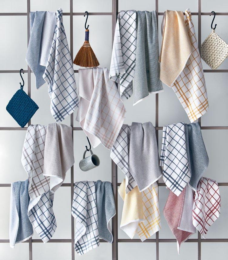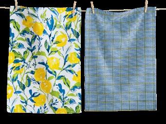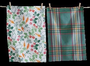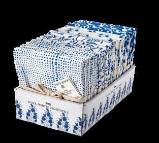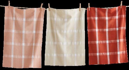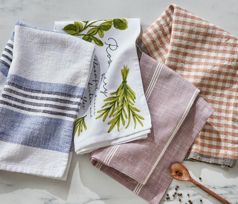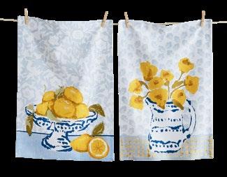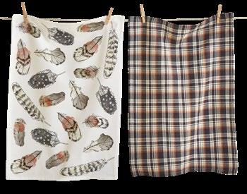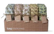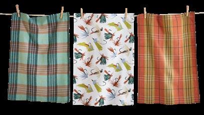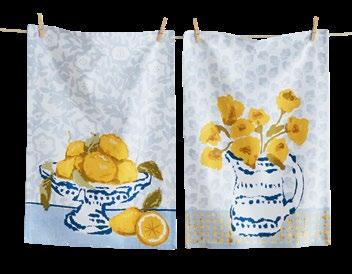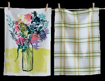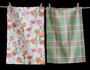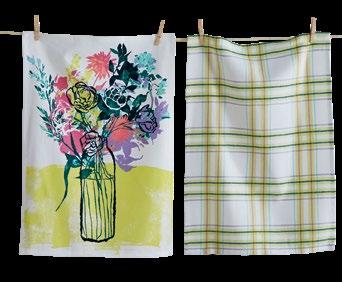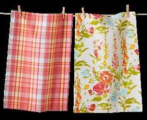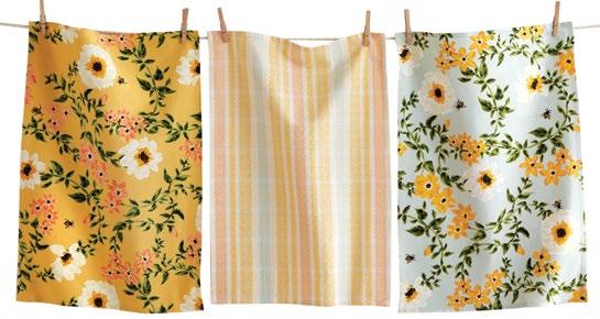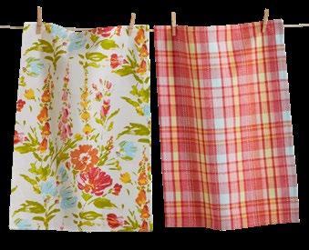 D NEW! G17887 SPRING BUD DISHTOWEL S/3 IN BIN (Multi) Cotton. Hand screen printed, hang loops. Machine wash cold separately, tumble dry low. Hang tag. Dishtowel: 26”L x 18”W x 0.03”H; Bin: 5.5”L x 5.5”W x 5”H. Pk 4/set. $13.00/set.