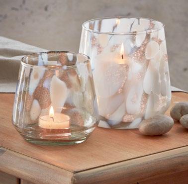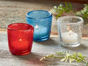 NEW! CONFETTI GLASS TEALIGHT HOLDER Glass. Hand crafted by artisans using blown glass techniques. Holds standard size metal, clear cup or led tealight or votive. Decorative use only.