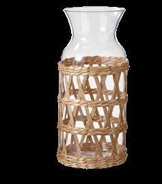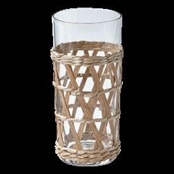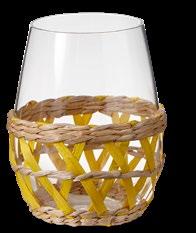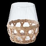 ISLAND STEMLESS WINE Glass. Woven cattail straw and paper sleeve applied by hand. Glass: dishwasher safe. Sleeve: removable, wipe clean with dry cloth. 4.72”H x 3.8”D. 16 oz. Pk 4 pcs. $5.00 ea.
