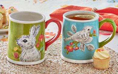 K NEW! G17991 SPRINGTIME PITCHER (Multi) Stoneware. Wax resist, hand paint. Hand wash. May get hot in microwave. 7.4”L x 5.3”W x 7.25”H 52 oz. Pk 2 pcs. $21.00 ea.
