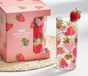 C NEW! G17972 STRAWBERRIES DRINKS GLASS S/4 (Multi) Retail-ready packaging. Glass: 2.55”L x 2.55”W x 6.18”H 10 oz; Packaging: 5.5”L x 5.5”W x 6.31”H. Pk 4/set. $16.00/set.