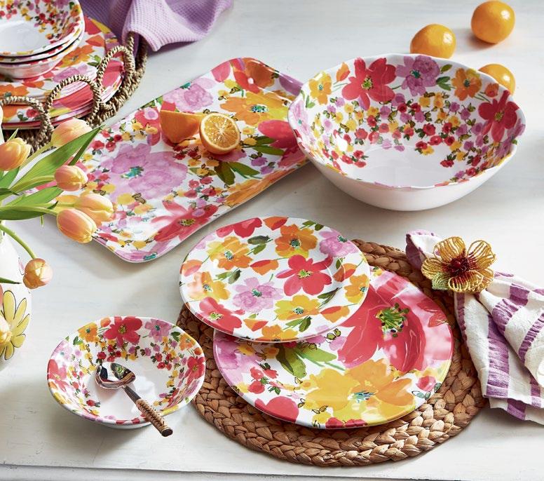 NEW! SPRINGTIME FLORAL MELAMINE (Multi) BPA-free. Shatterproof. Looks and feels like ceramic. Exclusive organic shapes, designs and finishes. Dishwasher safe, do not microwave.