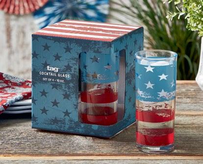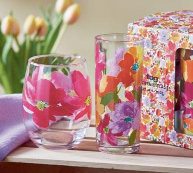 B NEW! G17969 SPRINGTIME DRINKS GLASS S/4 (Multi) Retail-ready packaging. Glass: 2.55”L x 2.55”W x 6.18”H 10 oz; Packaging: 5.5”L x 5.5”W x 6.31”H. Pk 4/set. $16.00/set.