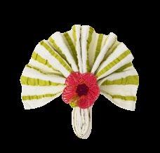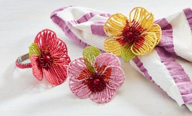NEW! BEADED FLOWER NAPKIN RING Metal, glass beads. Artisan made. Wipe clean. Hang tag. 3.5”L x 2”W x 2”H. Pk 8 pcs. $4.50 ea.