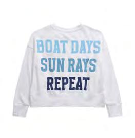 “BOAT DAYS, SUN RAYS, REPEAT” RELAXED SWEATSHIRT” NEW cotton and polyester; machine wash, tumble dry low • China v MSRP $70 min 2 $32 ea WHITE