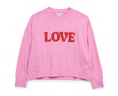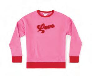 “LOVE” RELAXED SWEATSHIRT cotton, polyester and faux pearls; machine wash, tumble dry low • China v MSRP $79 min 2 $36 ea CANDY PINK