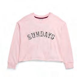 “SUNDAYS” LOUNGE SWEATSHIRT cotton and polyester; machine wash, tumble dry low • China v MSRP $70 min 2 $32 ea BLUSH