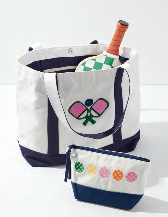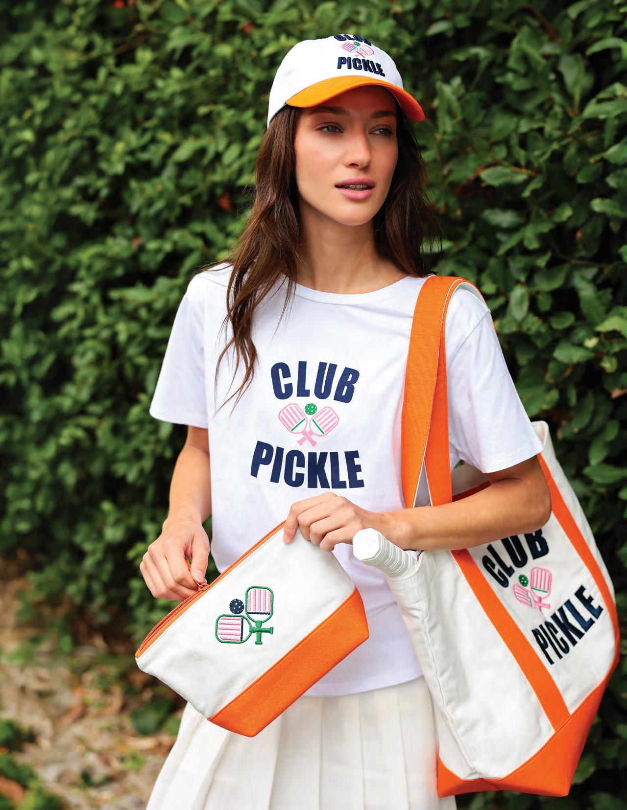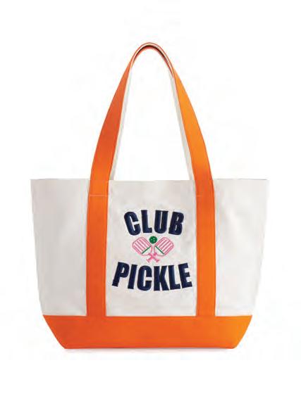 “CLUB PICKLE” TOTE L 21” x W 7” x H 14.5”; strap 11” • cotton; double shoulder straps; magnetic snap closure • India v MSRP $84 min 2 $38 ea IVORY 840394714639 01-37-141IV