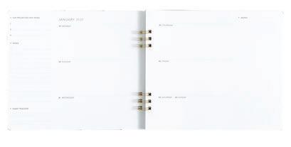 These planners are dated and include monthly and weekly spreads, as well as perforated notes for on-the-go planning. Each month also includes space for project planning, and for reflection and goal setting.