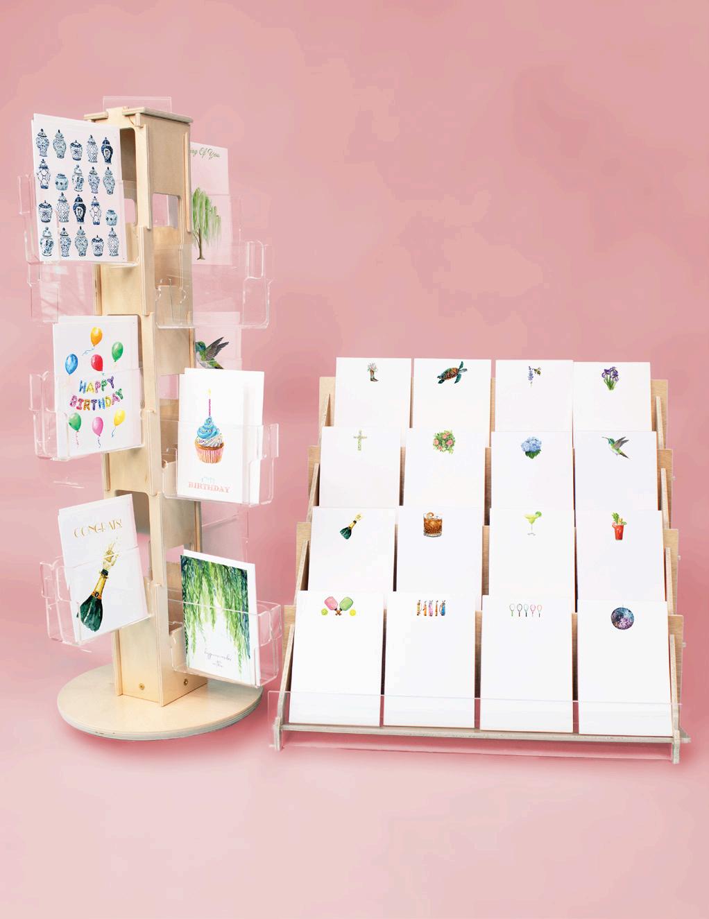 Looking for an ideal display solution for our cards and notepads? Look no further! We’ve discovered the perfect display rack to showcase Taylor Paladino products. These light wooden displays are not only sleek and stylish but also designed with store footprints in mind. When you purchase a program, we’ll split the cost of the display with you and arrange free direct shipping from the manufacturer.