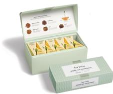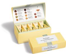 Ideal for true tea lovers, each of our various Tea Chests features an expansive assortment of 40 infusers. Under the lid, a detailed tasting menu invites the discovery of new favorites. The beautiful, reusable serving chest is easily refilled with our presentation box trays.