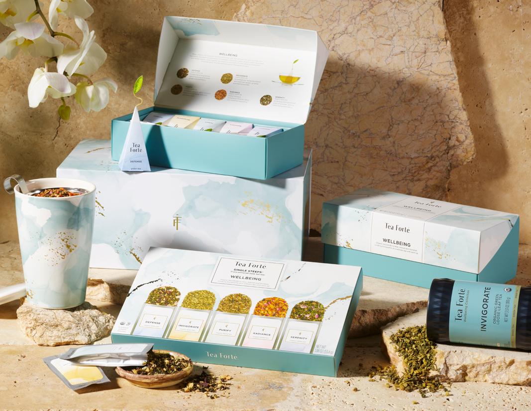 Tea lovers enjoy trying new blends and Tea Forté offers many options that allow tea drinkers to sample new flavorful blends in a variety pack — either infusers (petite presentation box) or as loose tea in single-serve pouches (Single Steeps®).
