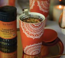A 13462 PETITE PRESENTATION BOX (10 INFUSERS) K 20893 KATI® STEEPING CUP & INFUSER 16383 TURMERIC TANTRA CHAI LOOSE LEAF TEA CANISTER