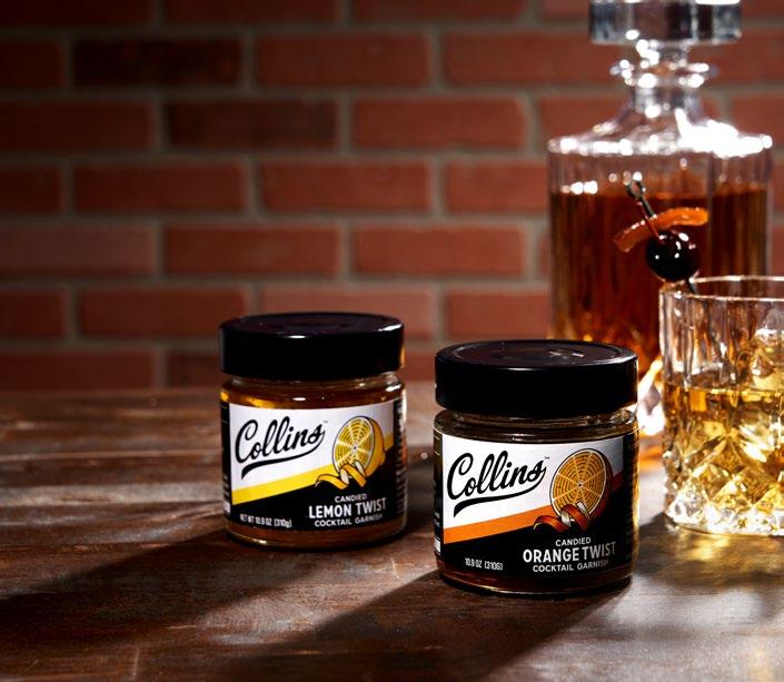 A1 Red Cocktail Sugar (7 oz) M15 | Pg 291 A2 Margarita Salt (6 oz) M14 | Pg 291 A3 Spicy Citrus Margarita Salt (4 oz) 11287 | Pg 291 A4 Bar Sugar with Foamer (16 oz) S24 | Pg 291 B1 Hot Buttered Rum Cocktail Mix (12 oz) R55 | Pg 280 B2 Tom & Jerry Cocktail Mix (12 oz) TJ23 | Pg 280 B3 Orange Twist in Syrup (10.9 oz) 6708 | Pg 283 B4 Lemon Twist in Syrup (10.9 oz) 11226 | Pg 283 E1 Pimento Cocktail Olives in Vermouth (4.5 oz) O268 | Pg 285 E2 Snow White Cocktail Onions (8 oz) O52 | Pg 286 E3 Gourmet Pickled Asparagus (16 oz) O290 | Pg 286 E4 Gourmet Pickled Green Beans (12 oz) 5762 | Pg 286 C1 Spicy Amarena Cherries (13.4 oz) 11227 | Pg 284 C2 Amarena Cherries (13.4 oz) 9407 | Pg 284 C3 Bourbon Cherries (11 oz) 9044 | Pg 284 C4 Bordeaux Stemmed Cherries (10 oz 6706 | Pg 284 C5 Maraschino Stemmed Cherries (26 oz) C22 | Pg 284 D1 Feta Cheese Cocktail Olives (4.5 oz) O271 | Pg 285 D2 Bloody Mary Cocktail Olives (4.5 oz) 6128 | Pg 285 D3 Garlic Cocktail Olives (4.5 oz) O257 | Pg 285 D4 Blue Cheese Cocktail Olives (4.5 oz) O270 | Pg 285 D5 Pimento Manzanilla Cocktail Olives (4.5 oz) O7 | Pg 285 F1 Dirty Martini Cocktail Mix (12.7 oz) OJ12 | Pg 279 F2 Smoked Old Fashioned Simple Syrup (12.7 oz) 11284 | Pg 275 F3 Rose Simple Syrup (12.7 oz) 11192 | Pg 275 F4 Sea Salt Espresso Martini Simple Syrup (12.7 oz) 11285 | Pg 275 F5 Brown Sugar Simple Syrup (12.7 oz) 11191 | Pg 276 F6 Lavender Simple Syrup (12.7 oz) 6700 | Pg 275 G1 Margarita Cocktail Mix (32 oz) CB2MG | Pg 280 G2 Jalapeño Margarita Cocktail Mix (32 oz) 6690 | Pg 280 G3 Grenadine Cocktail Syrup (32 oz) G22 | Pg 276 G4 Simple Syrup (32 oz) S45 | Pg 276 G5 Cherry Cocktail Syrup (32 oz) C8 | Pg 276 I1 Moscow Mule Cocktail Mix (32 oz) 6686 | Pg 279 I2 Hurricane Cocktail Mix (32 oz) H2 | Pg 280 I3 Piña Colada Cocktail Mix (32 oz) CB2PC