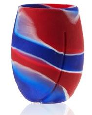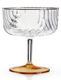 Inspired by traditional clay vessels for sipping mezcal, this colorful glassware is handmade by Mexican artisans from 100% recycled glass. Page 158