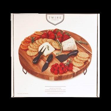 A1 Wood Handled Church Key Opener 2093 | Pg 302 A2 Copper and Gold Winged Corkscrew 5910 | Pg 98 A3 Wooden Double-Hinged Waiter's Corkscrew 3368 | Pg 91 A4 Vineyard Wine Charms 4078 | Pg 130 A5 Rose Quartz Wine Gems 6154 | Pg 73 A6 Derby Bottle Stopper 3829 | Pg 124 A7 Acacia Wood Muddler 3643 | Pg 54 A8 Gourmet Cheese Knife Set 3367 | Pg 319 A9 Riveted Cheese Knife Set 3411 | Pg 319 A10 Acacia Cheese Plane 5989 | Pg 321 B1 Tortuga Recycled Wine Decanter 11024 | Pg 201 B2 Tortuga Recycled Stemless Wine Glasses 11023 | Pg 194 B3 Rose Crystal Stemless Wine Glasses 6164 | Pg 193 B4 Rose Crystal Champagne Flutes 6161 | Pg 193 B5 Gold & Marble Bar Tool Set 10611 | Pg 37 B6 Acacia Wood Tapas Board 5970 | Pg 314 C1 Artistico Recycled Pitcher 11397 | Pg 166 C2 Artistico Recycled Margarita Glasses 11394 | Pg 166 C3 Artistico Recycled Stemless Wine Glasses 11392 | Pg 194 C4 Artistico Recycled Tumblers 11393 | Pg 166 C5 Primavera Recycled Shot Glasses 11030 | Pg 170 C6 Primavera Recycled Margarita Glasses 11028 | Pg 167 D1 Galvanized Metal Ice Bucket 2584 | Pg 64 D2 Hammered Mule Mug 3621 | Pg 168 D3 Square Slate Coasters 5266 | Pg 332 D4 Shatterproof Embossed Tumblers 11280 | Pg 167 D5 Rainbow Luster Tumblers 11452 | Pg 214 D6 Cast Iron Fondue Set 5998 | Pg 323 E1 1-Bottle Wooden Wine Box 3620 | Pg 270 E2 Oil & Vinegar Cruet 3366 | Pg 326 E3 Ceramic Brie Baker & Acacia Wood Spreader 5997 | Pg 323 E4 Rotating Charcuterie Board 11196 | Pg 313 E5 Acacia Footed Cheese Board & Knife Set 11363 | Pg 313 Be it a beautiful charcuterie board, a perfectly styled cocktail, or a unique wine tasting spread, Twine® has the pieces you need to make your customer's vision come to life. Indulge your creative side 13