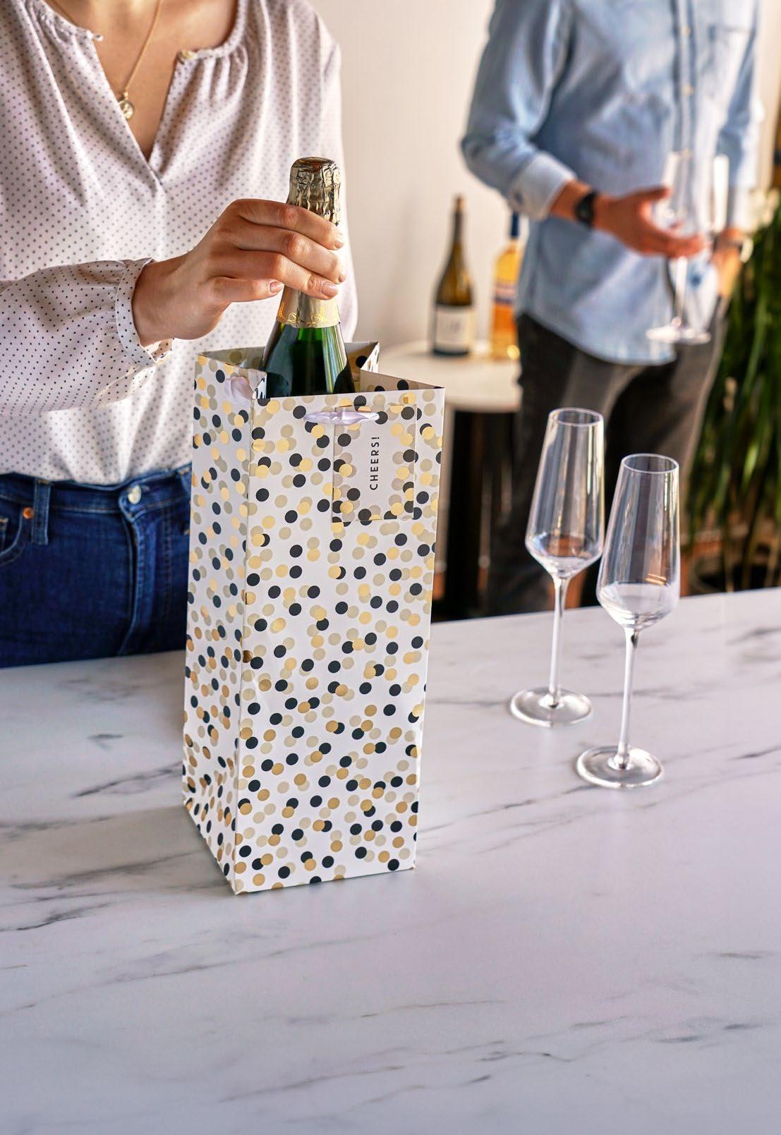 A1 Confetti Dot Liquor Bag 9870 | Pg 261 A2 Tuxedo Dots Liquor Bag 4730 | Pg 261 A3 Gold Arrow Liquor Bag 4565 | Pg 261 A4 Cheers Liquor Bag 10969 | Pg 262 A5 Plaid Liquor Bag 10900 | Pg 262 A6 Fireworks Wine Bag 10943 | Pg 253 A7 Charcuterie Board Kraft Wine Bag 10966 | Pg 252 A8 Wine Cork Wine Bag 9865 | Pg 250 A9 Assorted Chevron Wine Bags 3352 | Pg 245 B1 Wine Stain Wine Bag 2531 | Pg 251 B2 Keep Calm and Drink On Wine Bag 3481 | Pg 255 B3 Black Zebra Wine Bag 11075 | Pg 253 B4 Faux Leather Wine Bag 9972 | Pg 246 B5 For You Botanical Wine Bag 10941 | Pg 247 B6 Birthday Confetti Wine Bag 11073 | Pg 246 B7 Assorted Thanks Wine Bags 10942 | Pg 247 B8 Assorted No-Mess Glitter Bow Wine Bags 10945 | Pg 254 B9 Vintage World Map Wine Bag 11074 | Pg 253 C1 Ornate Wine Bag 11079 | Pg 251 C2 Assorted Sparkling Trio Wine Bags 0641 | Pg 245 C3 Assorted 2-Bottle Chevron Wine Bags 3282 | Pg 245 C4 Tuxedo Dot 2-Bottle Wine Bag 5076 | Pg 244 C5 Time To Party 2-Bottle Wine Bag 7998