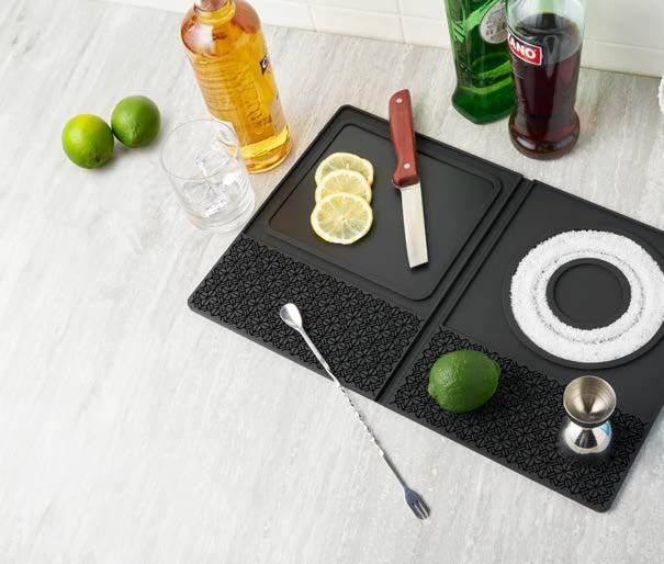 Bui lt-in strainer, citrus reamer, & bottle opener on base