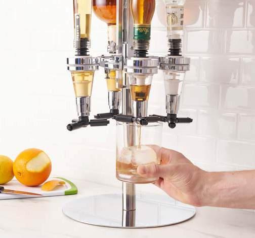 Take your home bar to a whole new level. The True® Liquor Tap dispenses 4 of your favorite spirits through separate hands-free spigots. Simply place your glass under your liquor of choice and press up to fill your tumbler with whiskey, tequila, gin, or any type of alcoholic or non-alcoholic beverage.
