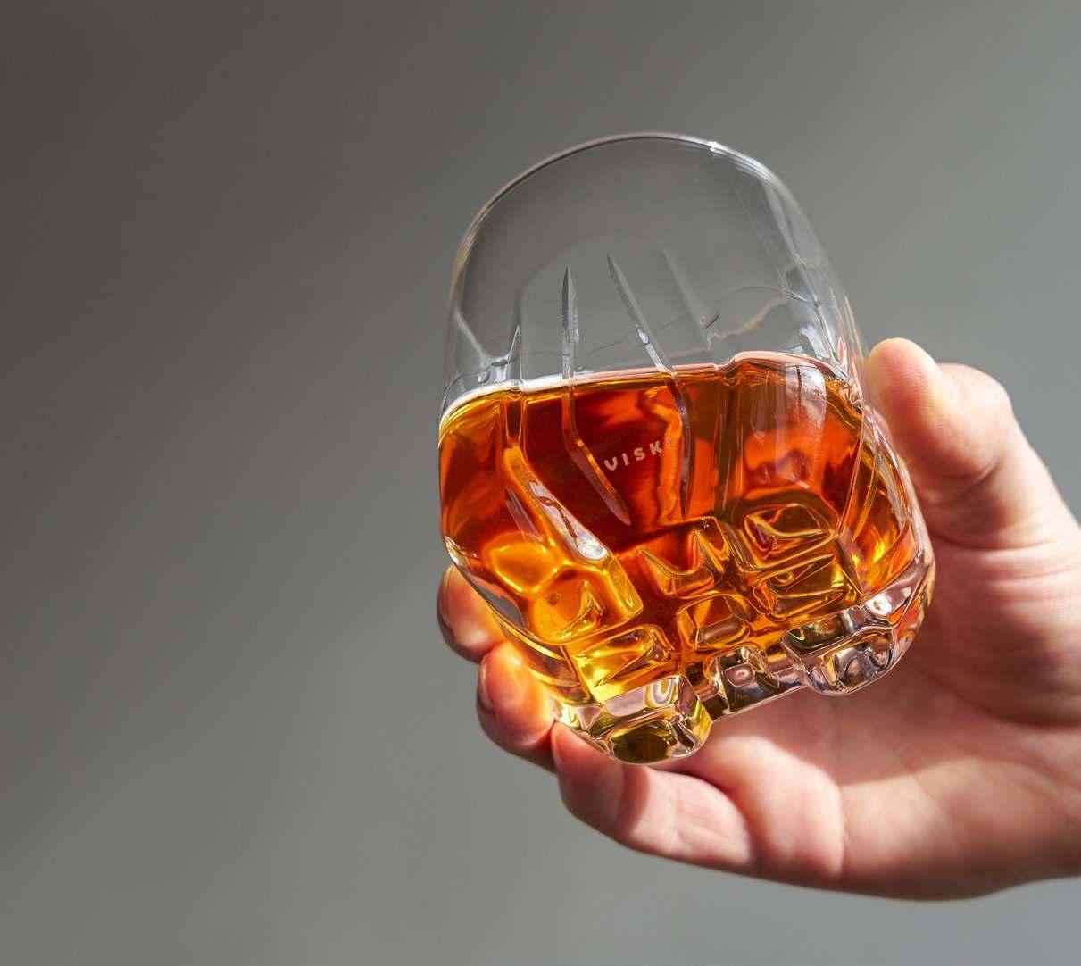 Designed for effortless swirling, this unique rotating whiskey glass spins smoothly thanks to a hidden rounded base. Complete with cut-crystal banded details, it’s an elevated rocks glass with an unexpected twist.