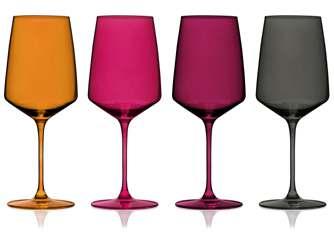 Enjoy your wine in gorgeous multicolored wine glasses. Crafted from European crystal, these stemmed wine glasses have a modern, angled silhouette with elegant stems.