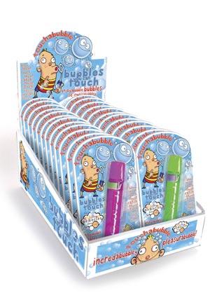 Bubbles youtouch!can 212891 Bouncy Eggs Height: 7cm - 3 inch AnpracticalEgg-cellent Yolk! 230066 CreepyGloopyCrawly Glop Height: 6cm -21/2 inch 222006 Touchabubbles Height: 20cm - 8 inch 212893 Stomp-A-Saurus Height: 7cm - 3 inch FITS PARTY BAG STAND! FITS PARTY BAG STAND!