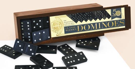 240032 Traditional Dominoes in a Wooden Box Box length: 16.5cm -61/2 inch 240028 Wooden Jericho Box height: 15.5cm -6 inch 245848 Tower of Hanoi 245849 Toppling Tower Wooden Puzzle Box height: 16cm -6½ inch The perfect set of Dominoes in a proper wooden box. A celebration of our greatest games from the last half-century.