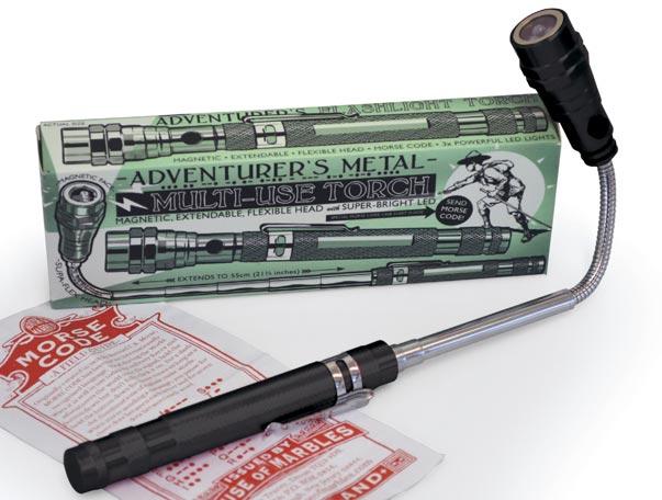 240034 Adventurer’s Campfire Fun Kit Height: 20cm -8 inch 245830 Adventurer’s ‘SCARAB’ Metal Carabiner Clip Clip Size: 6.5cm - 2½ inch A super bright torch with a flexible, magnetic, extendable head. Entertain a group. Tell a spooky story. Play some cards and quiet games. Run around and rough and tumble. Solve puzzles, learn dice games and tricks. Party like it’s 1955. 64