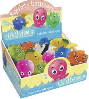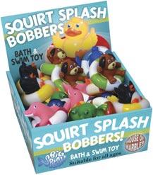 213299 Squirty Sealife Bath Toys Size approx: 9cm - 31/2 inch 213315 Squirt Splash Bobbers Size approx: 6cm - 21/2 inch 213320 Frog Bath Book & Mitt Size approx: 24cm - 91/2 inch 31