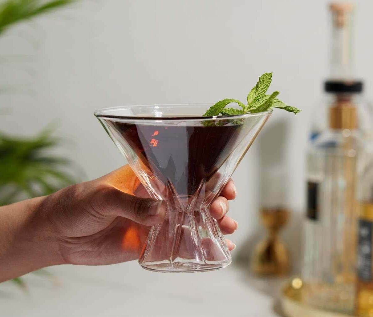 Add dimension to your cocktails with colorful glassware. These angled coupe glasses combine timeless elegance with vivid hues.